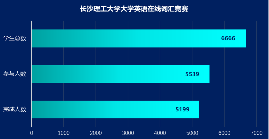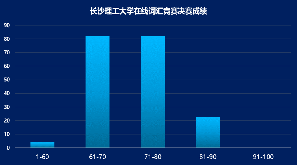 此次大学英语在线词汇竞赛为响应疫情期间“停课不停教”“停课不停学”的号召,秉承“以赛促练”、“以练促学”的理念,是检测学生前期在线自主学习成果的有效手段之一,也成为william威廉中文官网大学英语在线教学中第二课堂的形成性评价方式之一。在线词汇竞赛突破了疫情期间地域的限制,覆盖全校新生,参赛人数创下新纪录。竞赛流程简单易操作,学生在家手机登陆同时参与答题,竞赛成绩一键导出,奖项自动生成,节约了组织传统竞赛所需耗费的大量人力物力。