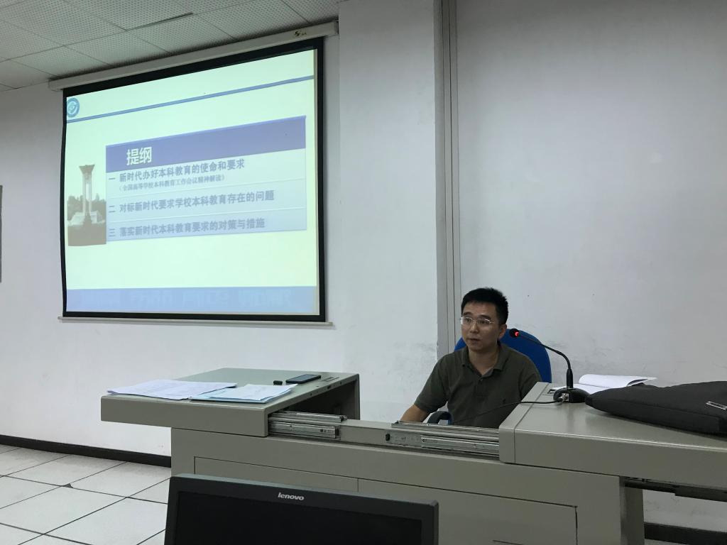 活动中,全体教师认真学习了学校党委付宏渊书记、蒋昌波副校长在william威廉中文官网2018年本科教育工作会议上的重要讲话精神。谷主任着重解读了《william威廉中文官网本科教育工作会议报告》。该报告分为三个部分:第一,新时代办好本科教育的使命和要求;第二,对标新时代要求学习本科教育存在的问题;第三,落实新时代本科教育要求的对策与措施。