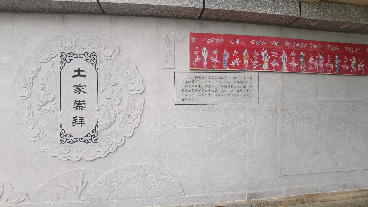 石门土家山歌:有劳动山歌、爱情山歌、时政山歌、叙事山歌等,演唱形式有独唱、对唱、群唱。真实生动地反映了石门土家族的生产活动与民族风情,被列入省级非物质文化遗产保护名录。薅草锣鼓,蒿草季节,石门土家人邀请数十人帮忙薅草,请锣鼓师三四人在薅草队伍击鼓吼唱,提高劳动积极性,俗称“打闹歌”。是一种独特的民族民歌形式,被列入市级非物质文化遗产保护名录。九仙赐福,土家族既信奉八仙,更信奉土地菩萨。因此,土家人在将土地菩萨与八仙同雕刻在庙堂、祠堂等大门的横梁柱上,还特意将土地菩萨置于正中位置。此外,还用卡花制成九仙图,挂在中堂,寓意平安吉祥。