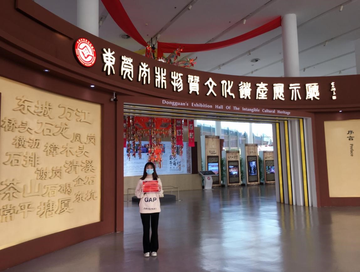 2021年1月29日,为响应学院号召,提高社会实践能力,了解家乡非遗文化演化历程,促进家乡非遗文化的传播,外国语学院翻译1802班刘禧憧来到东莞市非物质文化遗产展示厅开展“翻译医生”活动。此次活动,她参观家乡非遗展厅、拍照搜集资料搜查展览厅资料,并完成相应的翻译工作。