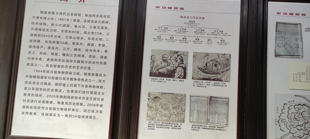 陆新祖屋距今已137年,是衡阳市区现存为数极少的古代湘南民居建筑之一。祖屋依地形布局,中轴线上第一进的处理亦因地制宜,独具特色;整个建筑装饰十分讲究,木雕、彩绘、堆塑内容丰富,工艺精湛,有的堪称艺术精品,是研究晚清民居建筑及其相关问题重要的实物资料。新屋南向墙面的弹痕、弹洞,更是1944年夏季抗日衡阳保卫战难得的历史见证,也是日寇侵华战争的罪证,它对于警示人们不忘国耻、居安思危有着重要的价值和意义。