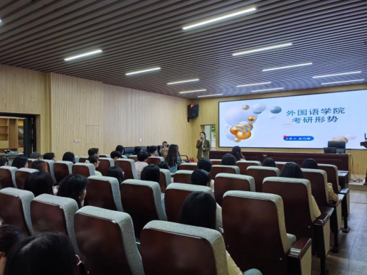 6月4日下午,外国语学院在三教229报告厅,召开了2025届研究生招生校内宣讲会。会议由学院分管研究生工作的姚尧副院长主持。学工办主任武巧琳、科研与研究生办主任刘丽娟及学院21级本科考研学生50余人参加了此次会议。