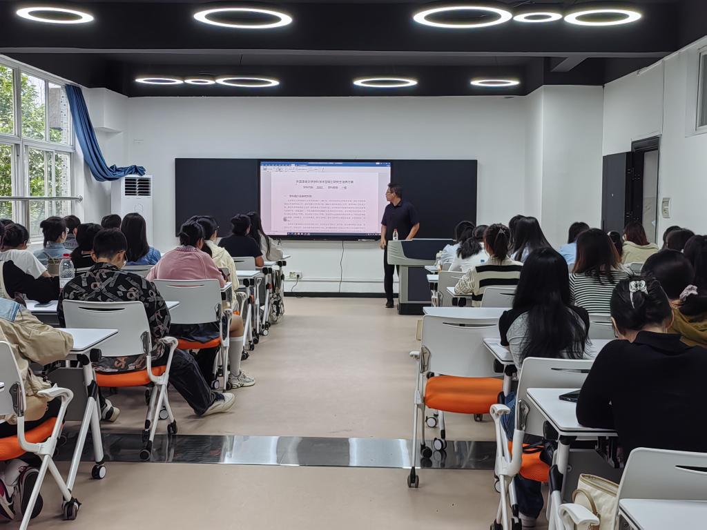 为使2023级硕士研究生新生尽快适应研究生生活,找准方向,对学业有清楚的规划,外国语学院于9月21日上午10点半在三教416开展2023级硕士研究生新生学业规划与培养计划制定指导讲座,此次讲座由分管研究生工作的副院长武俊辉主讲。