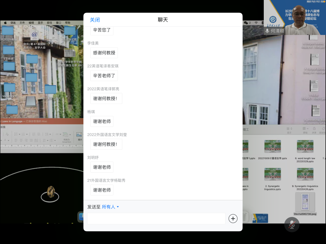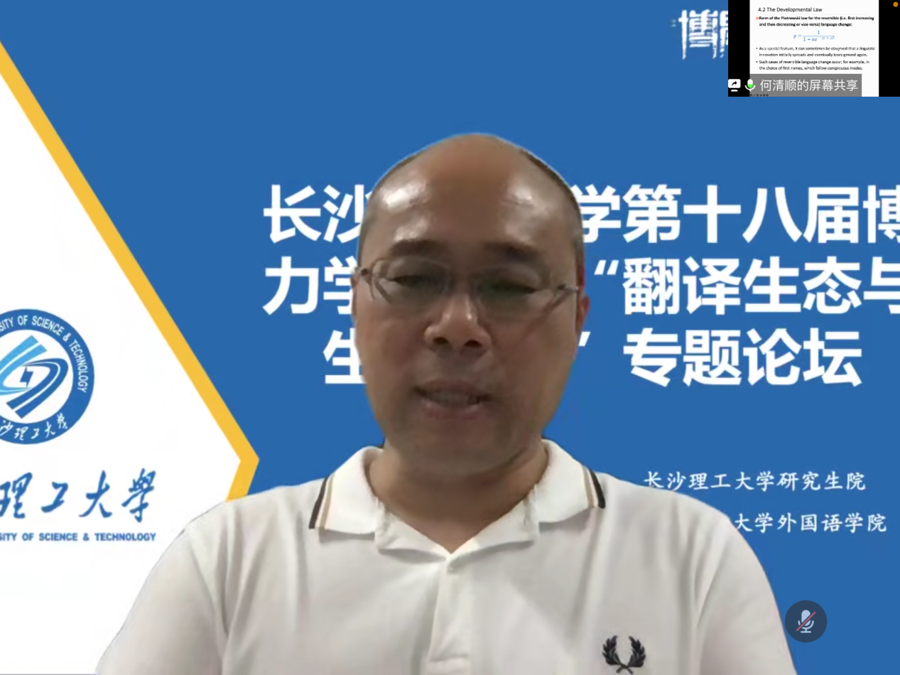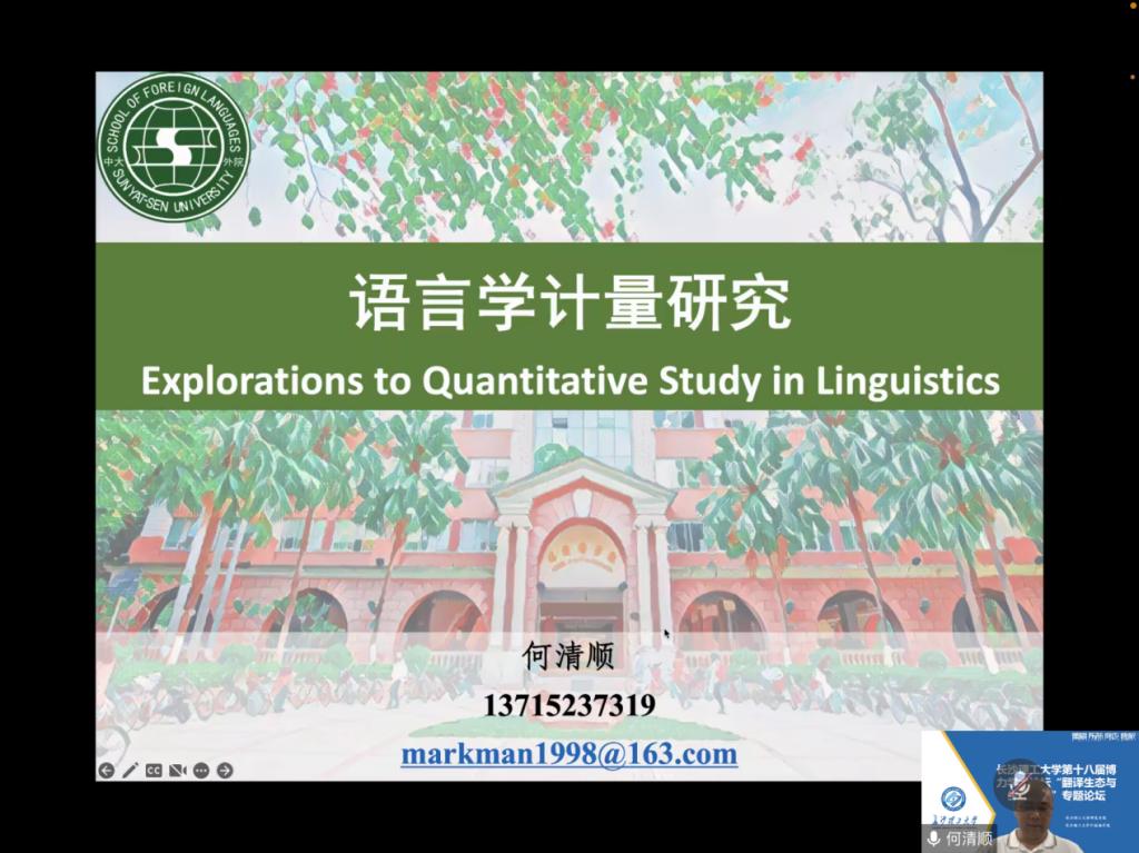 2022年11月,中山大学外国语学院博士生导师何清顺教授应邀为william第十八届博力学术论坛 “翻译生态与生态翻译”专题论坛作了题为“语言学量化研究”系列专题讲座。讲座共5场,围绕语言学量化研究的概念与内涵展开。外国语学院全体研究生及部分导师参加了讲座。