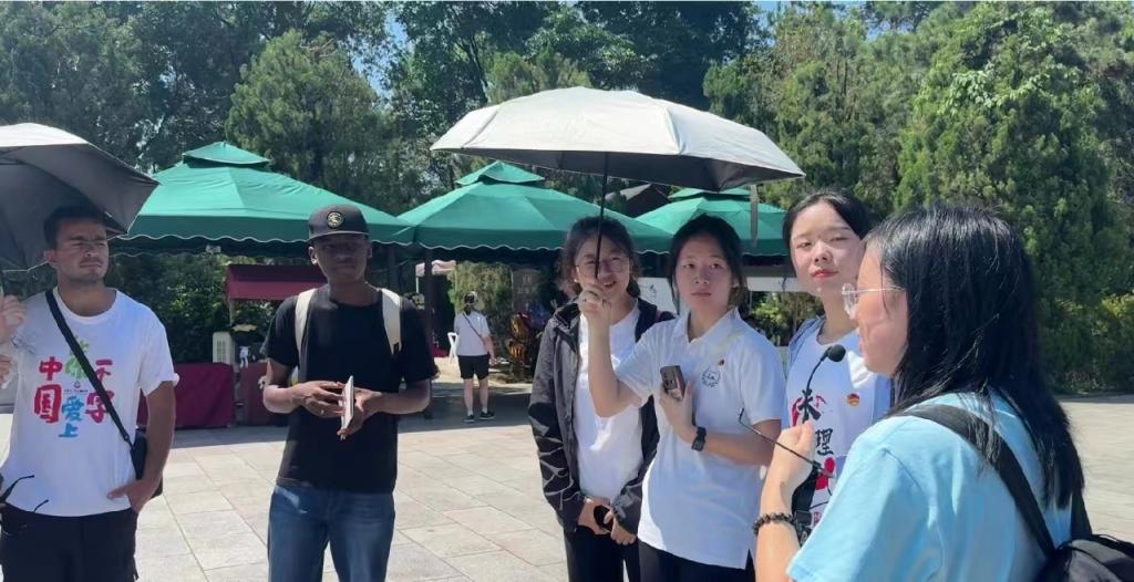 当日,实践团带领非洲友人在毛泽东故居、滴水洞、铜像广场等经典文化景点参观,共同感受伟人的精神风范,缅怀毛泽东同志的丰功伟绩。同时,实践团向非洲友人详细介绍了毛泽东生平和新中国外交的历史背景,与非洲友人们共同探讨了中非在政治、经济和文化等方面的交流与合作。