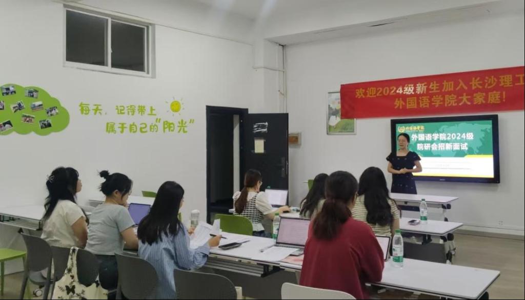 2024924日晚上7点,外国语学院在金盆岭校区3220开展研究生会招新面试,辅导员龙洋、院研会主席以及各部门部长担任本次招新面试官。