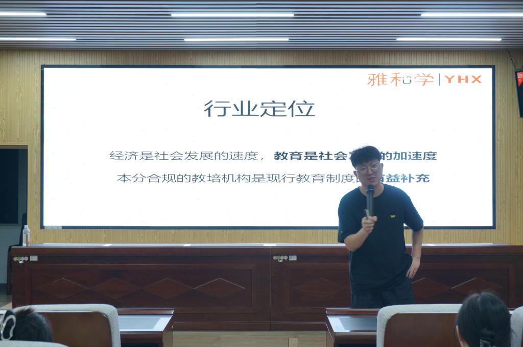 活动伊始,雅和学校园招聘负责人胡英杰为同学们全面介绍了教培行业的发展情况、公司的基本背景及核心业务,生动展示了教师日常授课的真实场景与工作氛围,并就同学们广泛关注的薪资福利、晋升通道和培训体系等进行了详细说明。胡老师还结合多年行业经验,分享了教培行业面试的实用技巧,包括简历撰写要点、试讲注意事项和常见问题应答策略,同时详细说明了雅和学的选拔流程与面试环节,帮助同学们更加有针对性地进行准备。