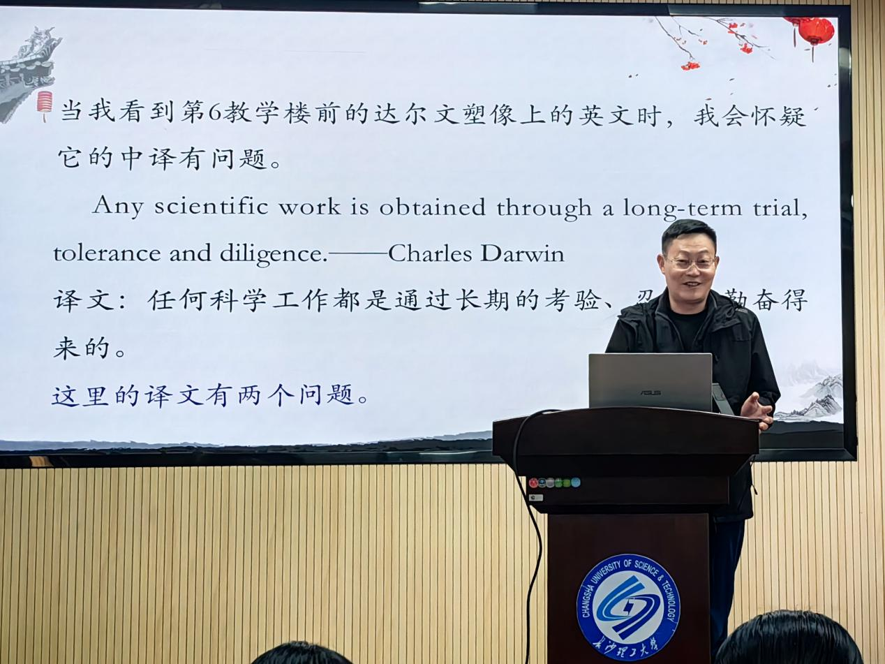 讲座尾声,我院院长段胜峰上台补充总结。他着重强调了覃先美的学术背景与贡献。段胜峰表示,思维科学与语言研究的深度融合,是我院学科发展的重要路径,希望大家在覃教授的点拨下,将所学知识运用到外语教学与研究中,共同助力我院学科建设迈上新台阶。