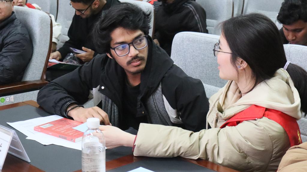 “Lei Feng ’s spirit is to serve the people wholeheartedly and make selfless dedication for the people’ s cause…”(雷锋精神的实质和核心是全心全意为人民服务,为了人民的事业无私奉献……)活动伊始,主持人刘鑫对雷锋精神的生动阐释,为来自孟加拉国、埃塞俄比亚、摩洛哥、尼日利亚等国的14名留学生打开了理解雷锋的大门。在随后的分享环节,留学生们将雷锋事迹与亲身经历交织。来自孟加拉国的周苏然讲述了在中国感受到的师友善意,认为这与雷锋精神一脉相承;摩洛哥留学生乐成则被雷锋在列车上赠与手套的故事深深触动,立志要做一颗对社会有用的“螺丝钉”。