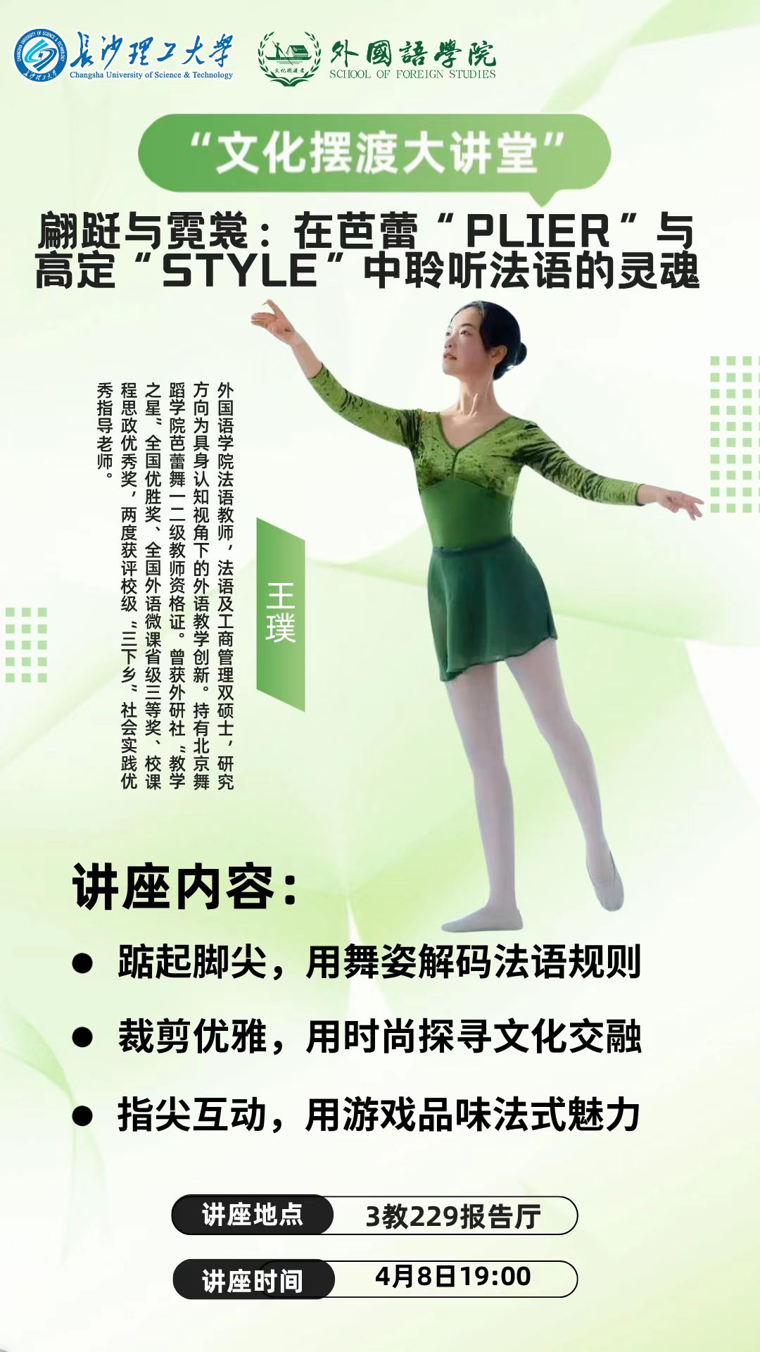 【主要内容】:芭蕾术语通用法语、巴黎高定诠释优雅。本场讲座以芭蕾与服装设计两大法国文化符号,开启身体相融的沉浸式法语学习。第一部分溯源芭蕾:从意大利起源到路易十四创办法兰西皇家舞蹈学院,借手位、舞姿、方位与经典动作术语,精讲法语序数词、动词构成、分词规则、名词修饰与方向介词,以肢体记忆单词、理解语言。第二部分走进高定黄金时代:结合香奈儿、迪奥、纪梵希三大设计师故事,解读时尚背后的时代变革、女性意识与文化交融。讲座含线上互动答题、实时投屏复盘词汇,还可分享体感学习心得。零基础可参与,共赏法式美学与语言魅力。