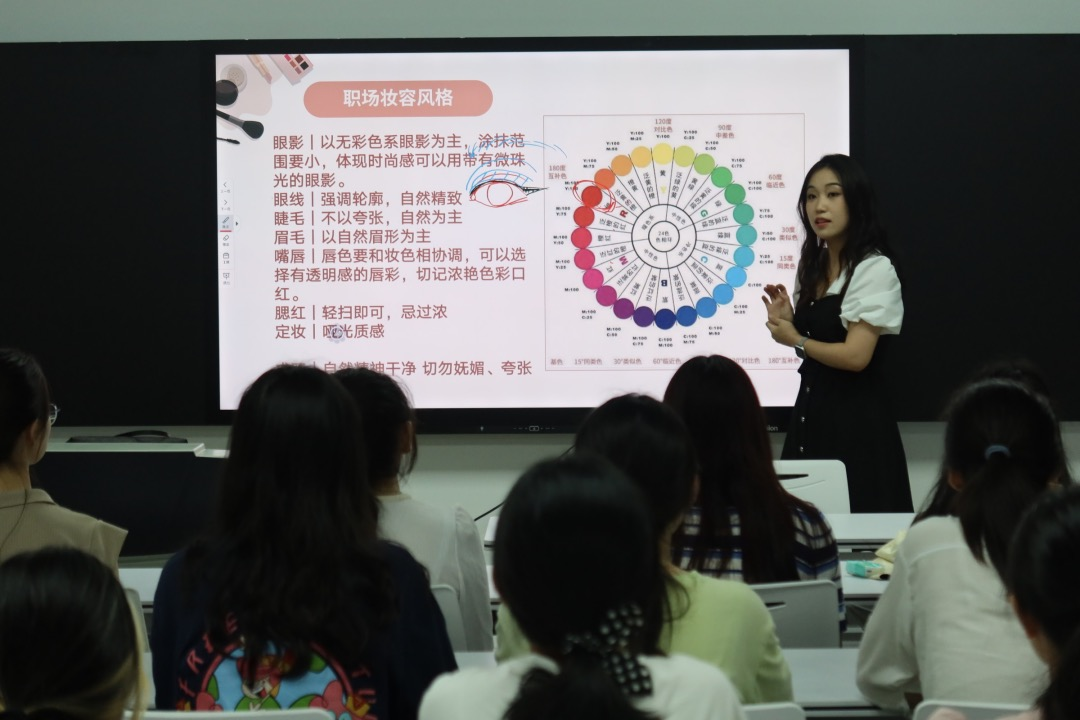为了协助外院学子更好展现魅力,突显女神气质,绽放青春光彩,2023年9月19日下午,外国语学院延续先前的成功经验,在3教611活动室开展了“职场妆容”的团体辅导活动。