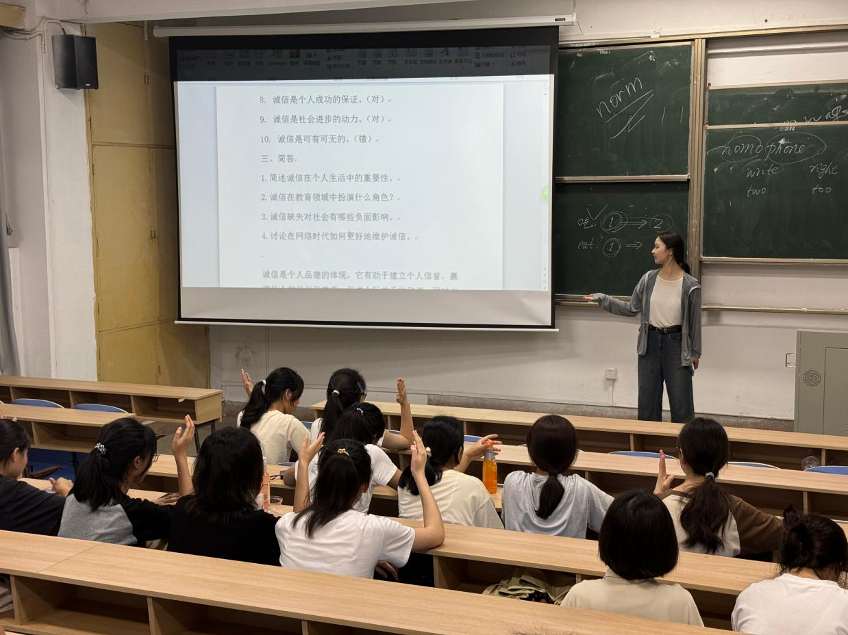 本次活动采取线下抢答的方式进行,同学们积极抢答,对诚信知识的学习展现出极大热情,题目围绕诚信的内涵、具体的失信后果和相关法律法规知识等进行抢答,通过以赛促学的方式帮助大家丰富诚信知识。