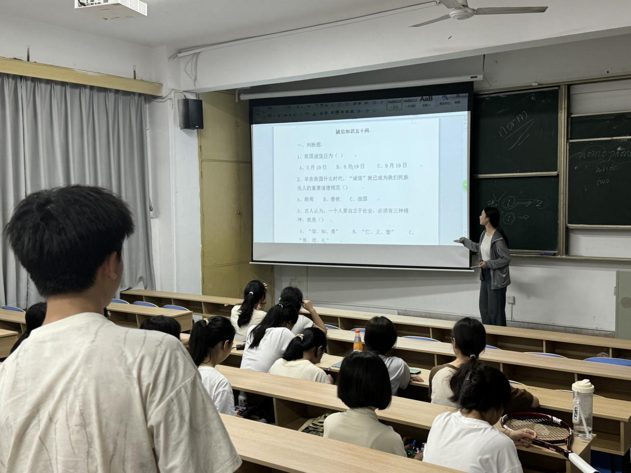 2025年5月22日,为了进一步加强外语青年的诚信教育,外国语学院在金盆岭校区三号教学楼216室开展了以“励志·感恩·诚信”为主题的诚信知识五十问知识竞赛。