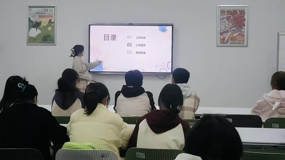 为帮助外国语学院班级心理委员明确自身职责、规范日常工作流程,学院朋辈心理互助部于11月24日19:00在三教220团体辅导室开展了班级心理委员交流活动。