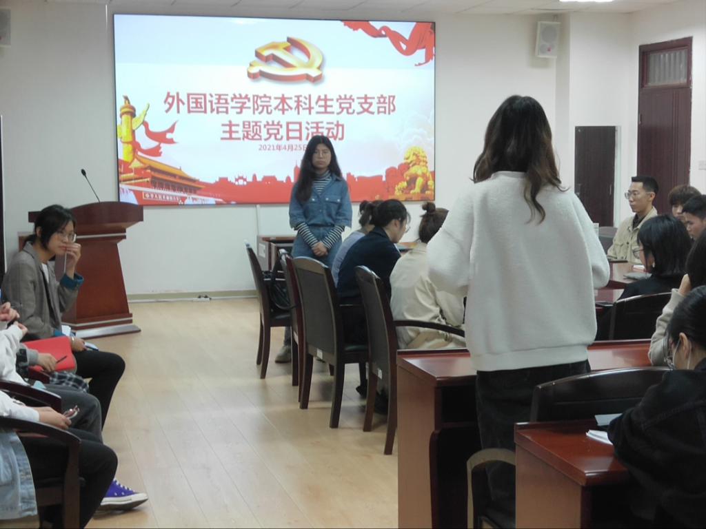 2021年4月25日晚七点半,外国语学院本科生党支部在文科楼A603开展教育扶贫主题党日活动。此次活动由党支部书记左婷主持,外国语学院本科生党支部全体成员和部分发展对象参加。
