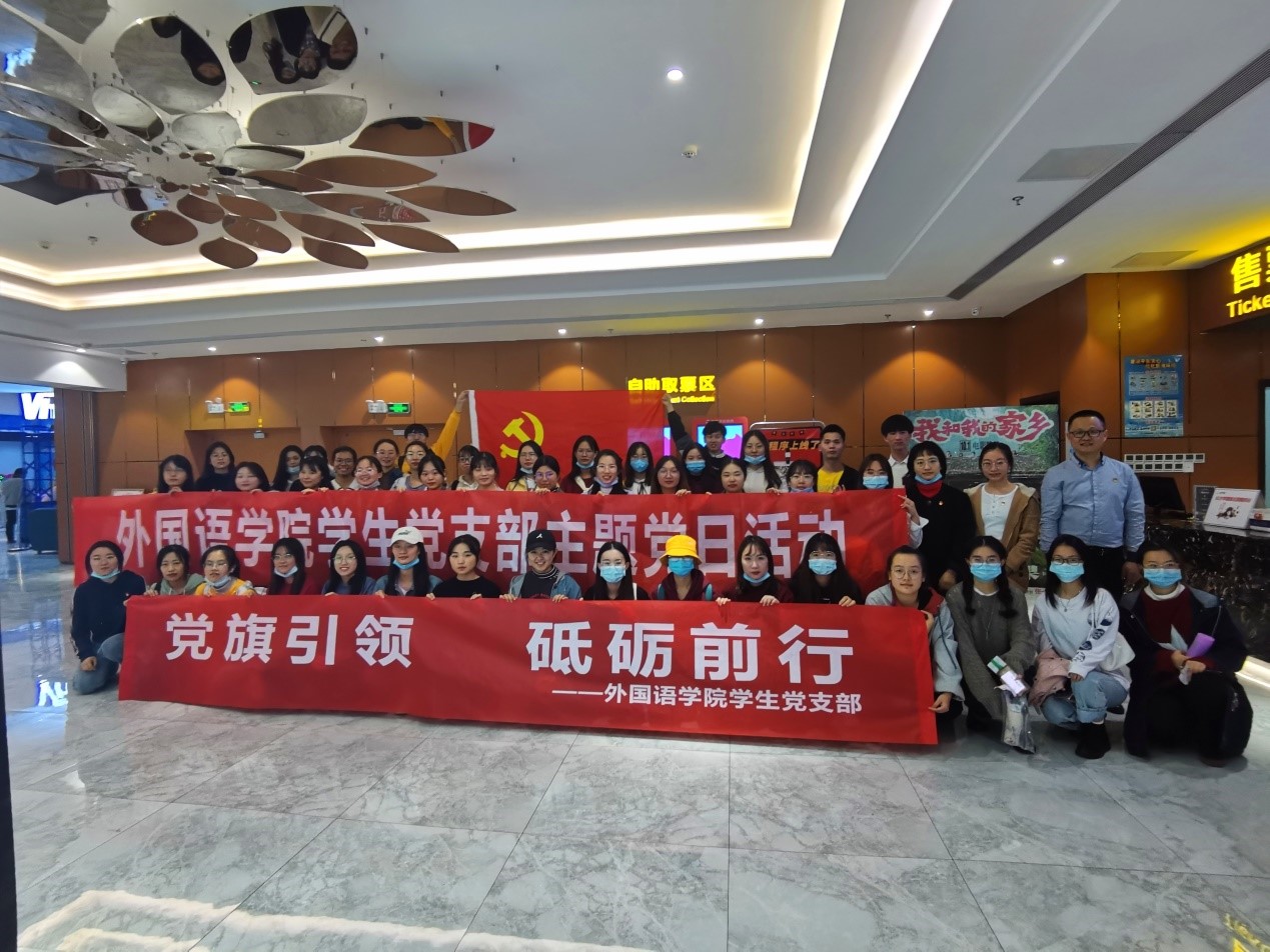 11月16日晚上六点半至九点,外国语学院党支部在丽发新城电影院开展“党旗引领,砥砺前行”主题党日活动。本次活动由专职组员汪功伟老师主持,带领外国语学院本科生党支部全体成员一同观看主旋律电影《一点就到家》并分享心得。