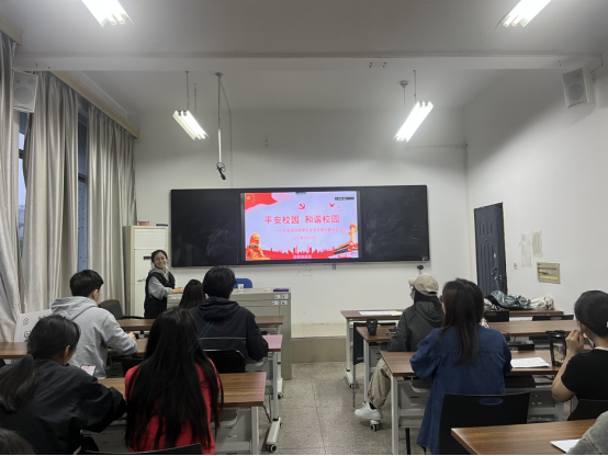 2023年5月23日晚,外国语学院研究生党支部在金盆岭校区9教407开展主题为“平安校园,和谐校园”的党日活动,本次活动由支部副书记李征临同志主持,党建辅导员毛婕老师及全体研究生党员参加。
