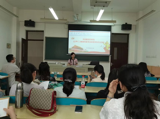 4月26日下午,公共外语二教研室党支部在云塘校区文科楼A-304教室召开主题党日活动,活动由支部副书记韩娜娜老师主持,支部全体党员参加。