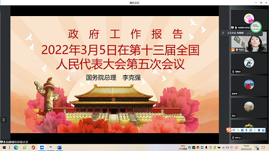 首先支部书记领学2022年3月5日国务院总理李克强在第十三届全国人民代表大会第五次会议上的政府工作报告。从三个方面进行归纳总结:一是我国发展取得的新成就;二是创新能力进一步增强,人民生活水平稳步提高,疫情防控成果持续巩固;三是2022年经济社会发展总体要求和政策取向。支部书记对从今年发展主要预期目标和继续做好常态化疫情防控进行阐释。