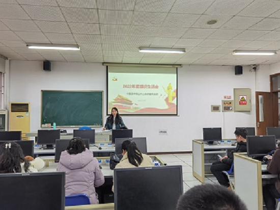 党支部书记代表党支部委员会向党员大会报告2021年度支部党建工作,通报党支部委员会对照履行党章规定的职责任务,对照落实党中央和上级党组织部署要求,对照完成党史学习教育、上年度组织生活会问题整改情况,对照师生的新期待,全面查找在发挥政治功能和组织力等方面的问题和不足,接受党员评议。