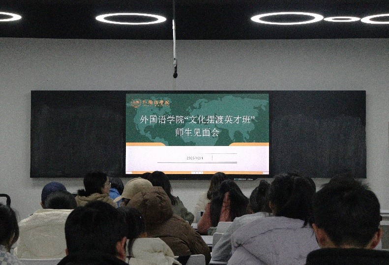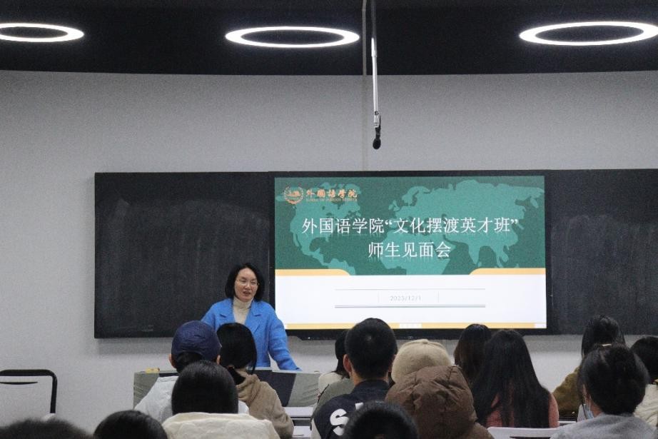 近日,william威廉中文官网外国语学院从2023级和2022级本科生中择优选拔40名同学组成“文化摆渡英才班”。为促进师生之间相互了解,加强班级凝聚力,12月1日,学院在金盆岭校区三号教学楼611教室举行了“文化摆渡英才班”师生见面会。学院党委副书记周芳、教学副院长季红琴、文化摆渡英才班班主任崔巍及全体英才班学员参加会议,会议由学工办辅导员毛婕主持。