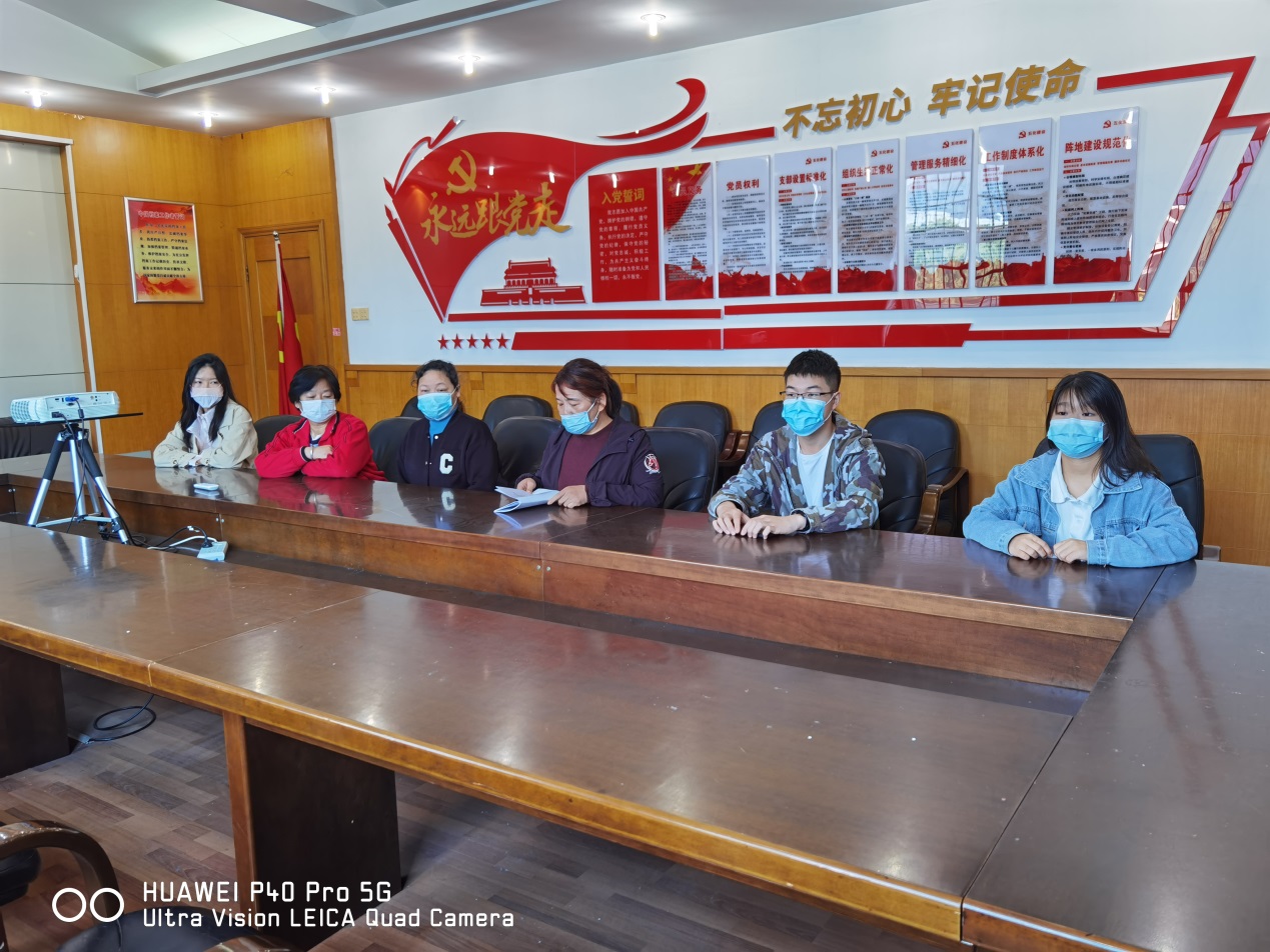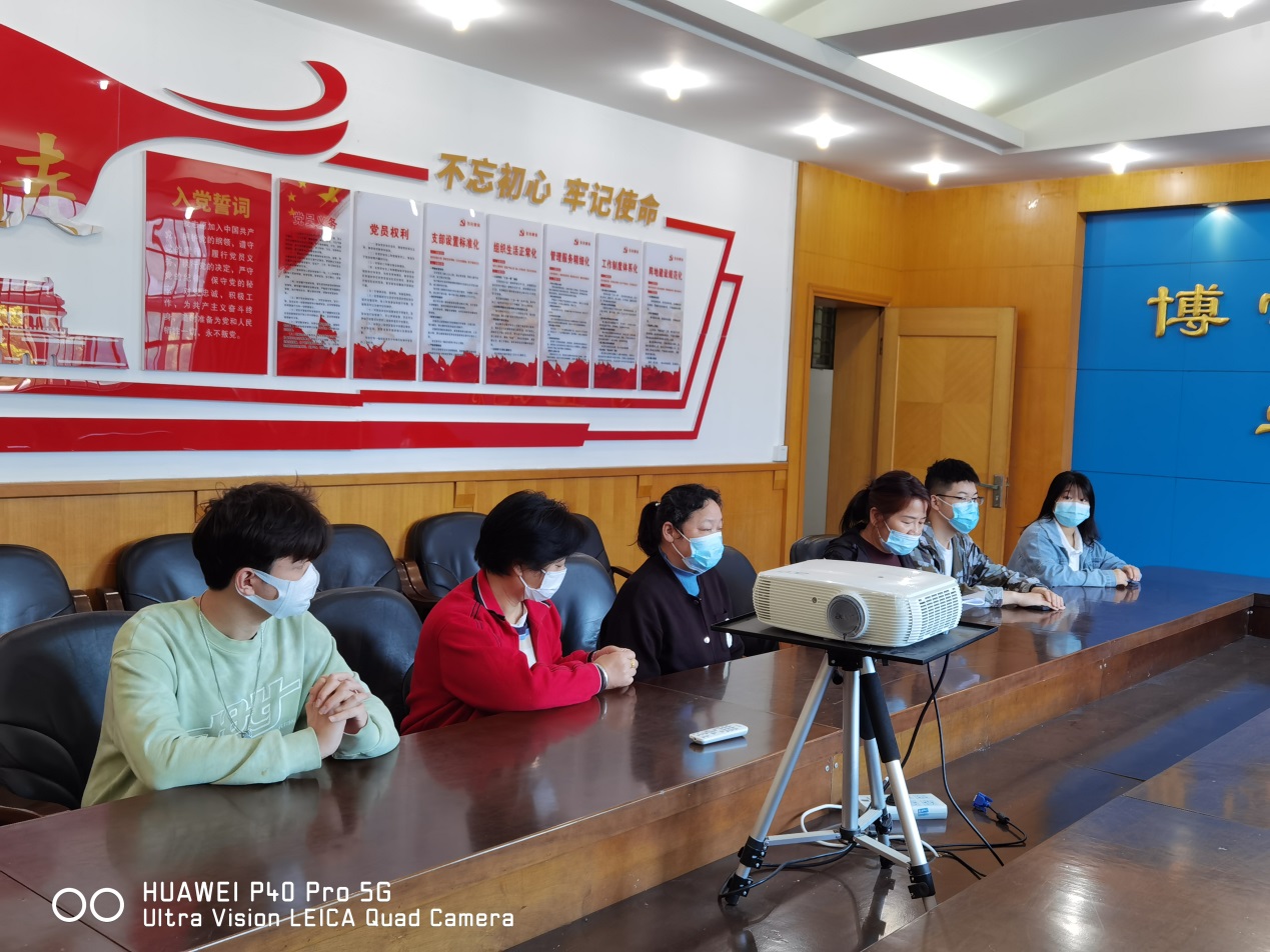 4月20日上午,学生档案室职工和学生助理一起学习新冠肺炎疫情防控知识