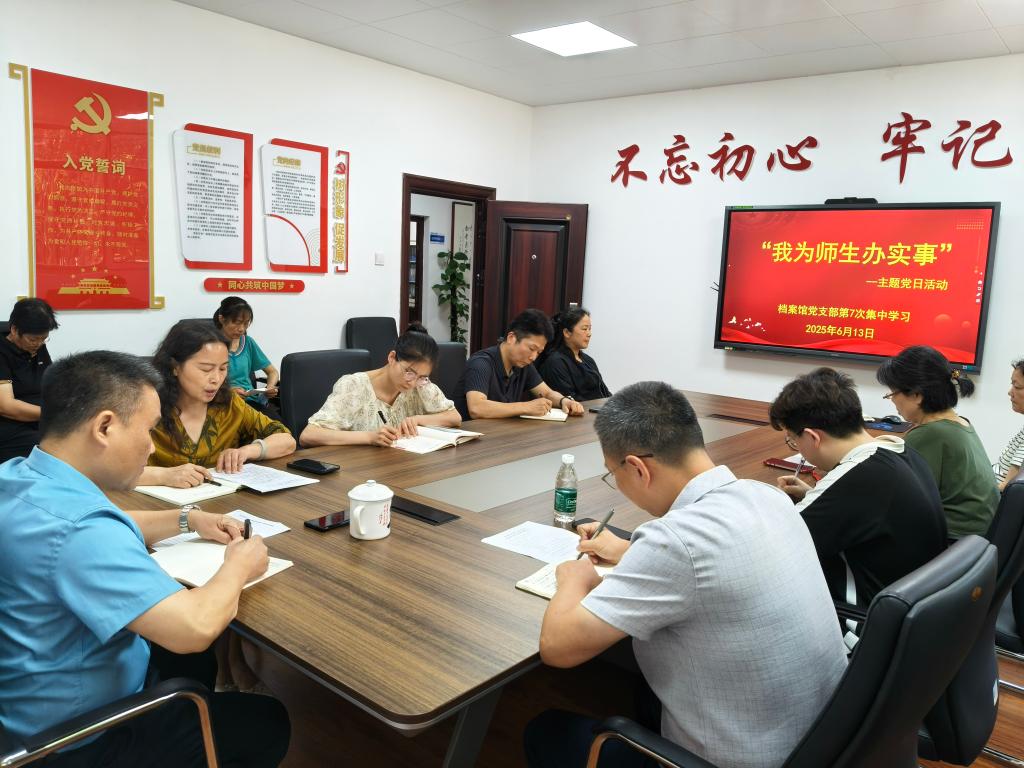 6月13日,档案馆党支部组织开展了以“我为师生办实事”为主题的党日活动,会议由支部副书记王任飞主持,档案馆全体教职工参加。