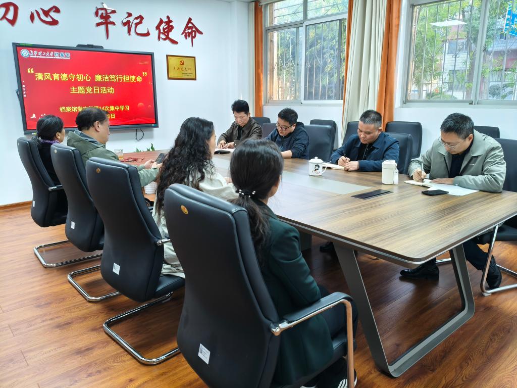 11月28日,档案馆党支部开展了“清风育德守初心 廉洁笃行担使命”主题党日活动(二),会议由支部副书记王任飞主持,档案馆全体教职工参加。
