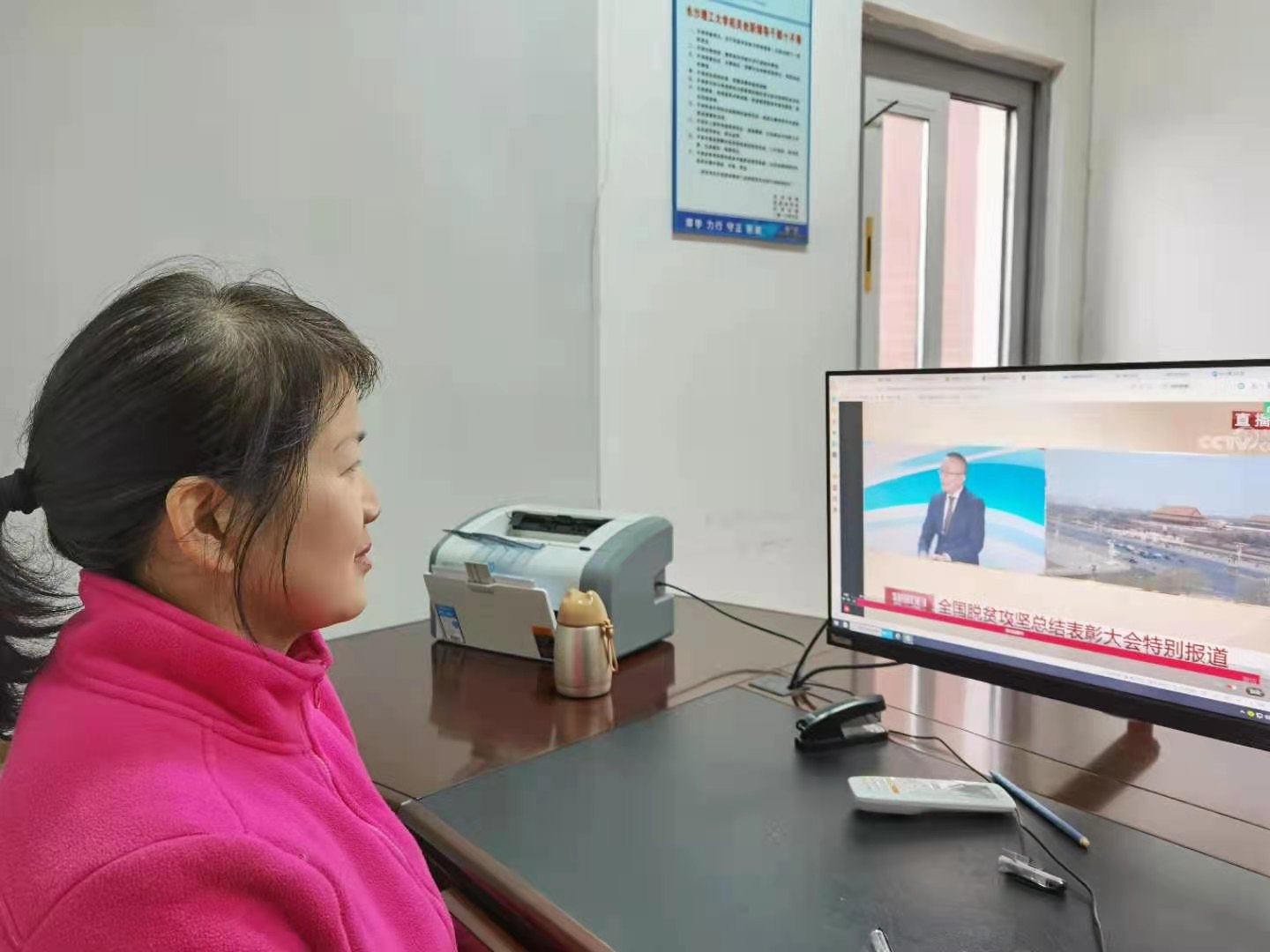 225日上午,全国脱贫攻坚总结表彰大会在人民大会堂隆重举行,中共中央总书记、国家主席、中央军委主席习近平向全国脱贫攻坚楷模荣誉称号获得者颁奖并发表重要讲话。大会还表彰了全国脱贫攻坚先进个人、先进集体。档案馆支部全体党员在金盆岭校区、云塘校区办公室及个别在家观看的方式,全程观看了大会直播。