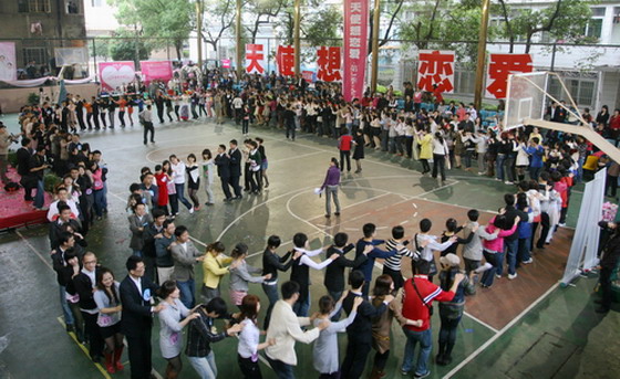 活动在湖南著名主持人熊晓雯的主持下拉开了帷幕。从集体亮相到集体兔子舞,从才艺展示到拓展游戏,直至速配,场面非常热闹。