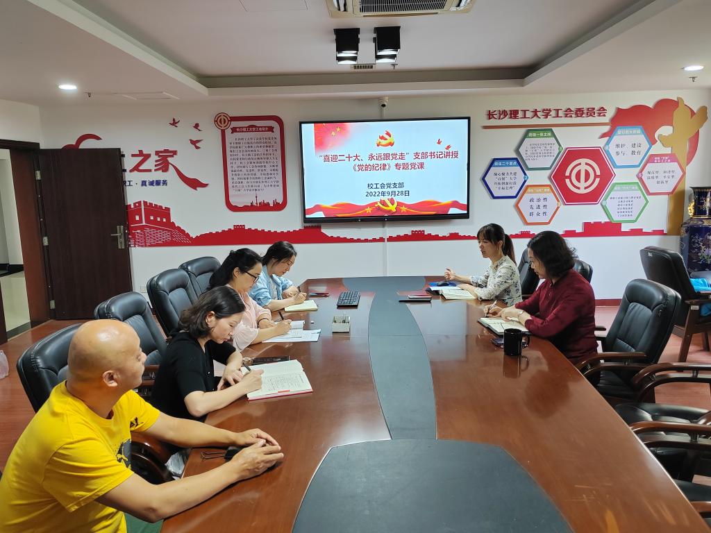 在党的二十大召开之即,为推进全面从严治党向基层一线延伸,提升支部党员政治纪律意识,加强政治纪律教育,928日下午,校工会党支部组织全体党员主题教育党课学习。党支部书记郭剑为大家讲授《党的纪律》专题党课。