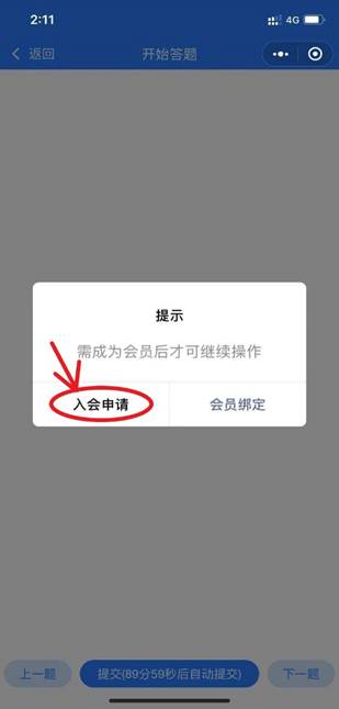 第六步:若还没有注册的新进教职工,请点击“入会申请”,完善个人资料后即可答题
