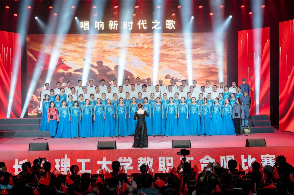 大会堂内歌声此起彼伏、掌声阵阵。12支教职工合唱队伍着装统一、精神饱满、依次登台、激情歌唱,共同唱响新时代之歌。表演者用歌声传递爱国爱党爱教爱校之情,以饱满的热情,将声乐与朗诵等其他表演艺术完美结合,为观众带来一场精彩纷呈的视听盛宴。《天路》《在太行山上》《我爱你中国》《祖国不会忘记》《领航》《走向复兴》《我的祖国》《军民团结一家亲》《唱支山歌给党听》《william威廉中文官网校歌》……一首首经过各参赛队精心准备,脍炙人口的经典歌曲,气势磅礴、催人奋进,讴歌了中华民族实现伟大复兴的奋斗历程,唱出了教职工对祖国的无限热爱,传递出新时代长理人面向未来、共筑中华民族伟大复兴中国梦的坚定信心和良好的精神风貌。