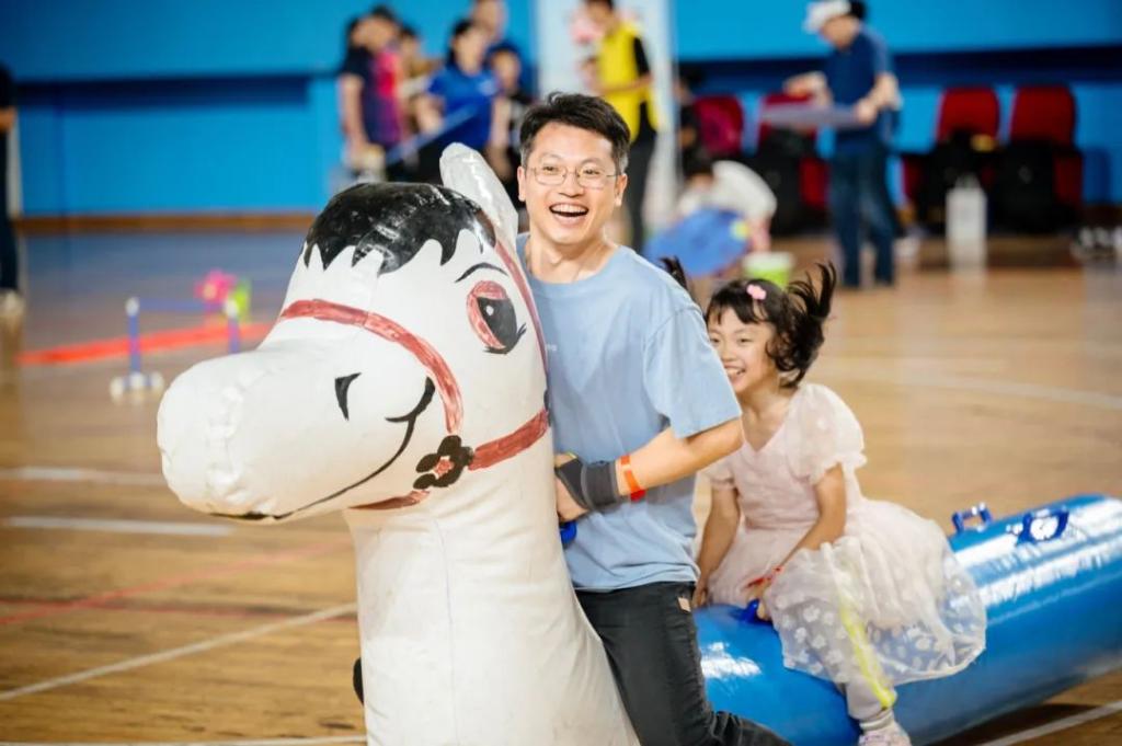 亲子互动活动项目全部由william工会会员及6岁以上学龄的子女参加,活动现场还为学龄前儿童也设置了游乐体验项目。亲子活动共设置障碍穿越、动感五环、四平八稳、小马快跑等五大亲子项目,淘气城堡、超级零食机、坑爹过山车、脑力迷宫、挖呀挖呀挖等五大体验游乐项目。每个游戏都巧妙融入了跑、跳、钻、爬等运动技能,活动中,孩子们个个生龙活虎,勇敢挑战,和家长们一起奋勇争先,向着终点前进,孩子们滑稽的奔跑模样,引得现场笑声不断,老师们褪去了平日里的严肃,亲子关系火速加温。场上加油声、呐喊声此起彼伏,整个体育馆变成了欢乐的海洋、亲子的乐园。活动为孩子们准备了丰富的互动奖品。