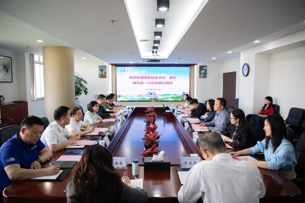 方琼对钟剑波一行的到来表示热烈欢迎,并介绍了学校的基本情况和近年来在人才培养、学科建设、科研工作、社会服务等方面取得的成绩。她指出,学校与南县有着长远的缘份和深厚的感情,校县双方在农产品精深加工、文旅产品品牌推广等领域早已建立良好合作,学校将充分利用现有资源,围绕数字文旅、低空经济、洞庭湖治理、生物医药、人才培养等方面与南县开展深度合作,打造高水平校地合作样板,共同为谱写中国式现代化湖南篇章贡献力量。