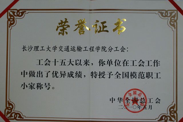 最后,正校级督导员兼校工会主席甘均良,为获得“全国模范职工小家”的交通运输工程学院分工会授牌、颁奖并讲了话。他对交通运输工程学院职工小家建设活动所取得的成绩给予充分肯定。他说,交通运输工程学院始终坚持以科学发展观为指导,贯彻落实全心全意依靠教职工办学的指导方针,紧紧围绕加强教职工队伍建设,不断探索增强工会工作时代感和实效性的新路子,工会工作贴近时代、贴近工作、贴近生活、贴近教职工,建家活动呈现出不少特色和亮点。希望交通运输工程学院以此为新的起点,根据新时期的要求,继续坚持“建家就是建学院”的思想,继续抓好建家工作。同时,也希望其他单位以交通运输学院为榜样,扎实开展建家活动,进一步发挥创新性,打造新的亮点,争创更多全国和省级模范职工小家。