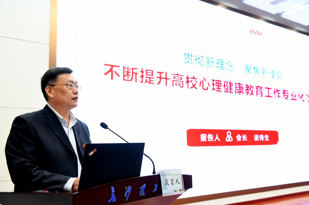 谈传生在会上做题为《贯彻新理念,聚焦新使命,不断提升高校心理健康教育工作专业化水平》的工作报告。报告指出,在过去的三年里,湖南省高校大学生心理健康教育研究会在省教育厅的正确领导下,坚持以习近平新时代中国特色社会主义思想为指导,深入贯彻党的十九大、十九届二中、三中、四中全会精神,落实全国高校思想政治工作会议精神和全国教育大会精神,凝心聚力、研究发展,夯实心理健康教育的三个基础,提升两支队伍的专业化水平,发挥桥梁纽带作用,有效提高了各会员单位的心理健康教育工作水平。下一步,研究会将顺应时代要求,认真履行研究、服务、指导、联络职能,充分调动各会员单位的主观能动性,夯实工作基础,深入推进成长辅导;强化培训督导,继续推进专职教师专业化水平;提升研究深度,充分发挥助手智囊作用,大力推动心理健康教育专业化发展,为我省大学生心理健康教育的工作水平再上新台阶贡献力量。