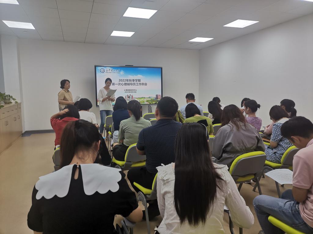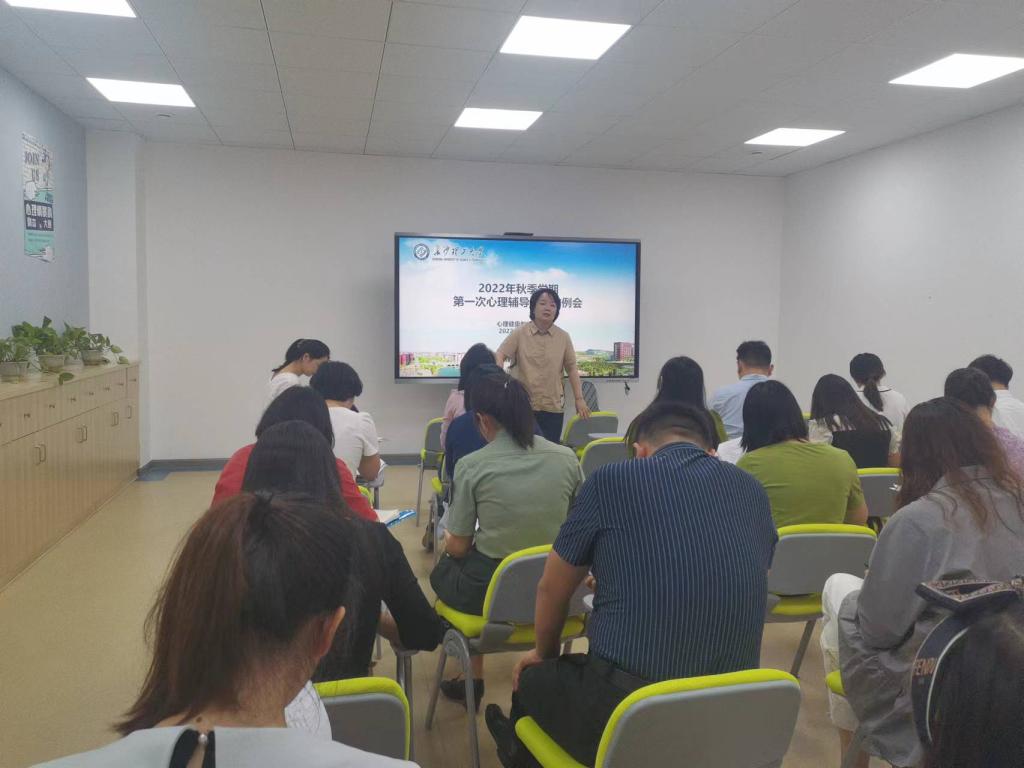 8月20日上午9:30,2022年秋季学期第一次学院心理辅导员工作例会在心理中心团体辅导室召开。会议由学工部(处)心理中心主任龚勋主持,中心老师和全体心理辅导员参加。