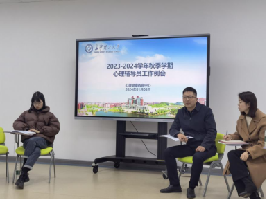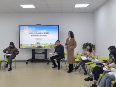 1月8日下午,2023-2024学年秋季学期心理健康教育工作总结会在心理中心团体辅导室召开,会议由心理中心主任易敏主持,学工部副部长陶传谱,中心专职教师和全体心理辅导员参会。