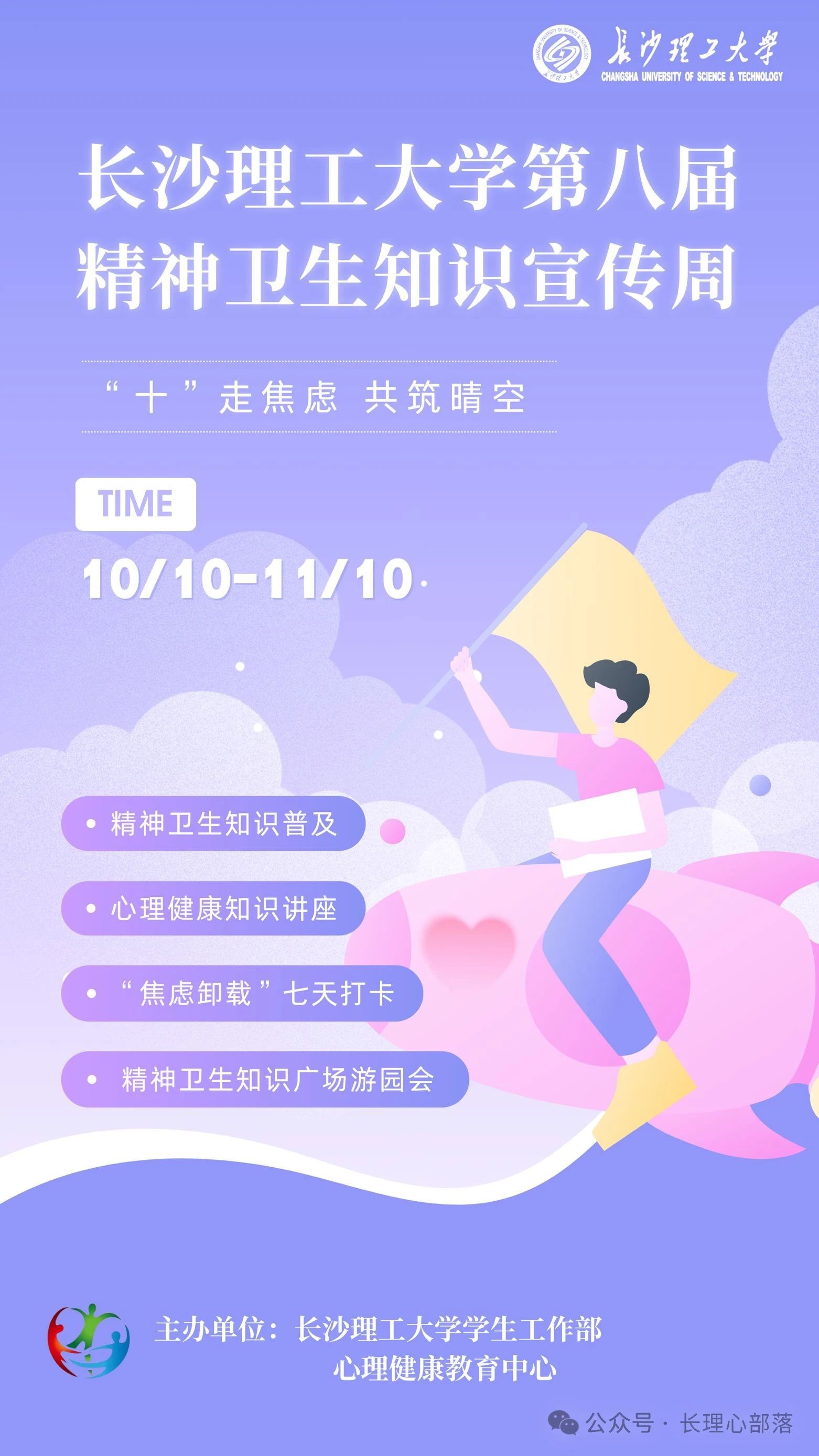 本次活动主题为“‘十’走焦虑,共筑晴空”,同时在云塘和金盆岭两个校区顺利开展,吸引了700余名同学积极参与。