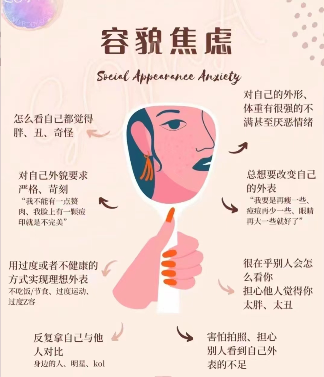 接下来就和蓓蓓一起深入认识一下容貌焦虑,走出这个焦虑怪圈吧~