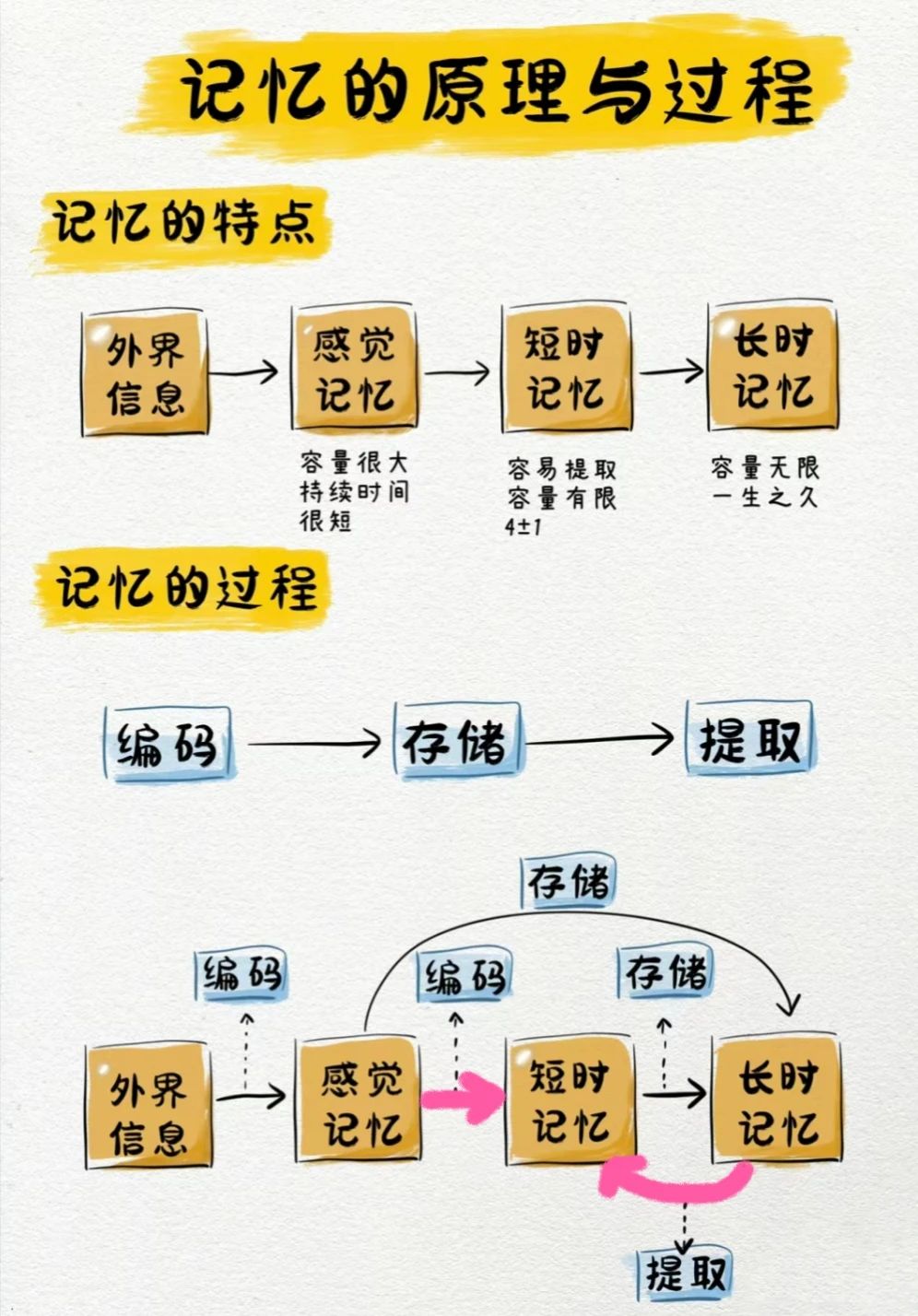 当然,更深入地说,记忆其实可以分为三个由浅入深、相互联系的加工阶段,分别是“感觉记忆”、“短时记忆”和“长时记忆”。