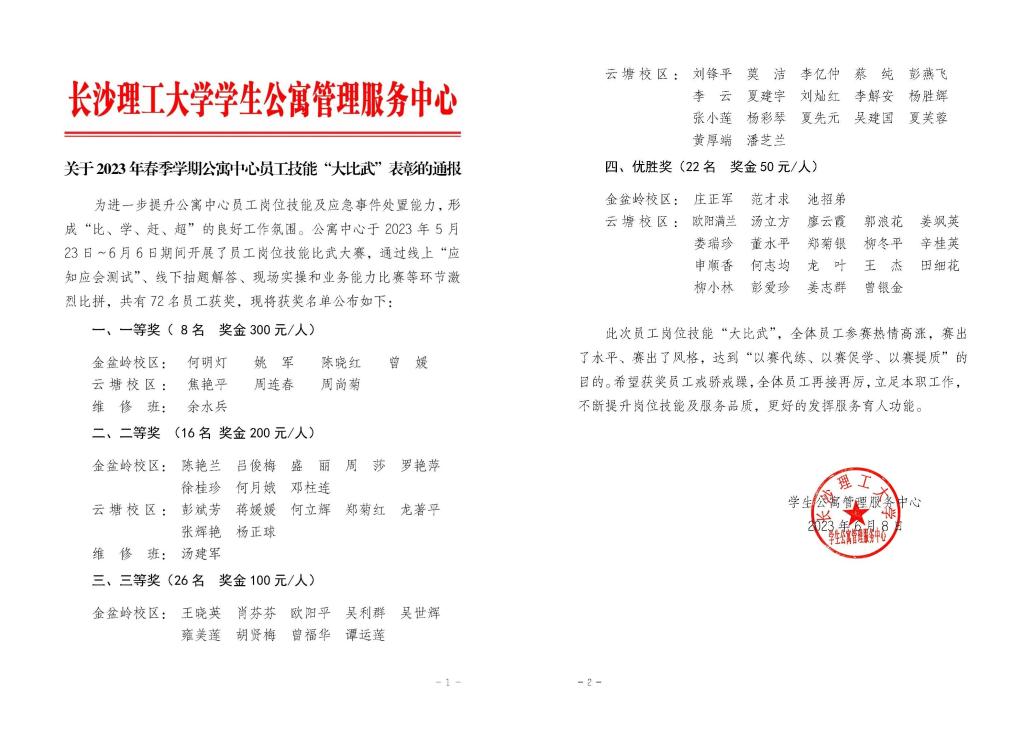 关于2023年春季学期公寓中心员工技能“大比武”表彰的通报-2023.6.8.pdf