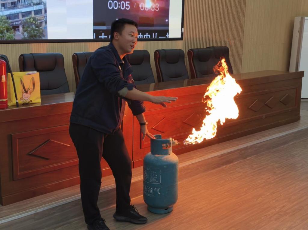 活动采用“理论宣讲+现场演示”模式,聚焦公寓管理核心场景。宣讲环节,颜井乡教官解读了宿舍使用大功率电器、私拉乱接电线等违规行为危害,梳理公共区域消防通道堵塞、灭火器过期等安全隐患,明确员工巡查要点与隐患上报流程;同时拆解规范报警流程、科学疏散技巧及初期火灾处置原则,结合高校公寓典型火灾案例剖析隐患苗头与处置误区。理论宣讲后,教官开展现场灭火演示,通过实操教学帮助参会人员掌握灭火技能,提升应急处置能力。