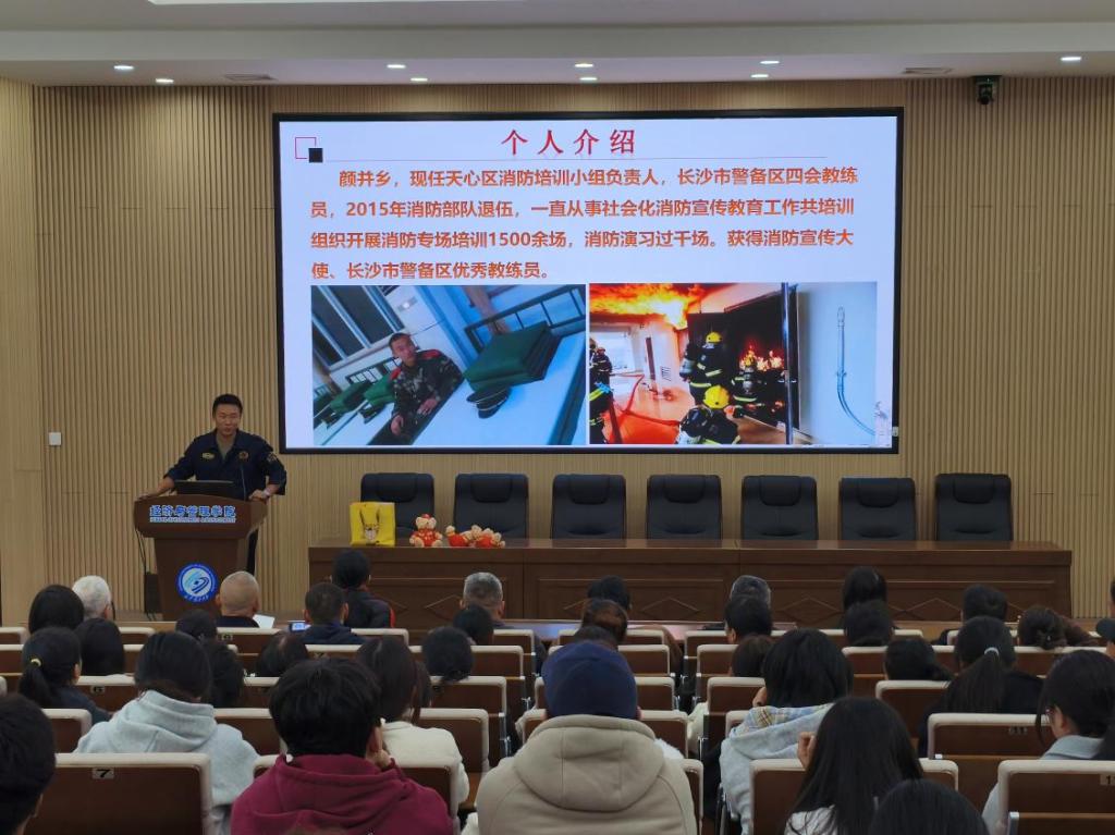 为筑牢校园公寓安全防线,响应国务院安委会办公室2025年全国消防宣传月号召,11月11日下午2:30,学生工作部公寓管理服务中心在金盆岭校区经管大楼100报告厅成功举办“全民消防、生命至上——安全用火用电”专场活动。普消消防资深教官颜井乡应邀参加授课培训,金盆岭校区全体员工、学生社区自主管理委员会学生代表、保卫部副部朱波涌、消防干事易剑等参加活动。