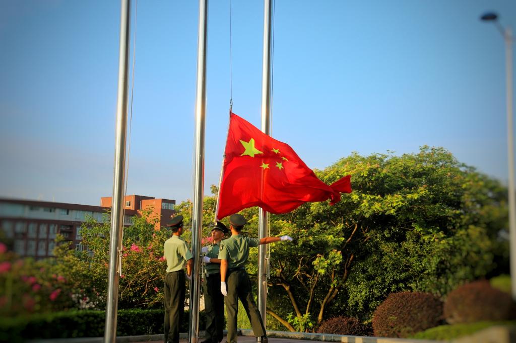 7时整,伴随着初升的太阳,国旗班迈着铿锵有力的步伐,喊着嘹亮的口号,迈向国旗台。在全体同学们的注视下,在整齐嘹亮的国歌声中,国旗缓缓上升,闪耀在william威廉中文官网上空。