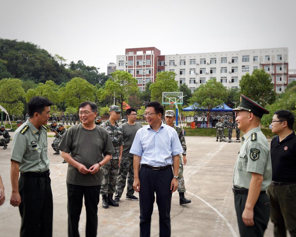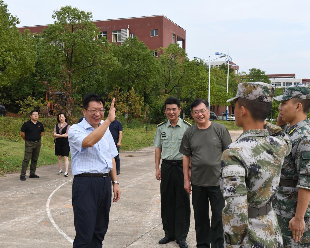 8月29日下午,校党委书记付宏渊、副校长谈传生在人民武装部负责人、相关学院党委副书记的陪同下,看望慰问暑期在校集训的民兵连学员。