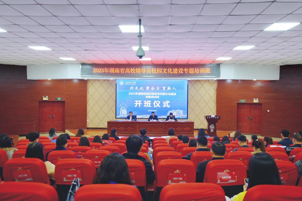 4月25日上午,“兴文化 聚合力 育新人”2023年湖南省高校辅导员校园文化建设专题培训班开班仪式在william云塘校区文科楼A200举行。湖南省委教育工委、省教育厅思政处一级调研员陈解,william威廉中文官网党委委员、副校长蒋璟萍,来自76所高校的101名学员参加。