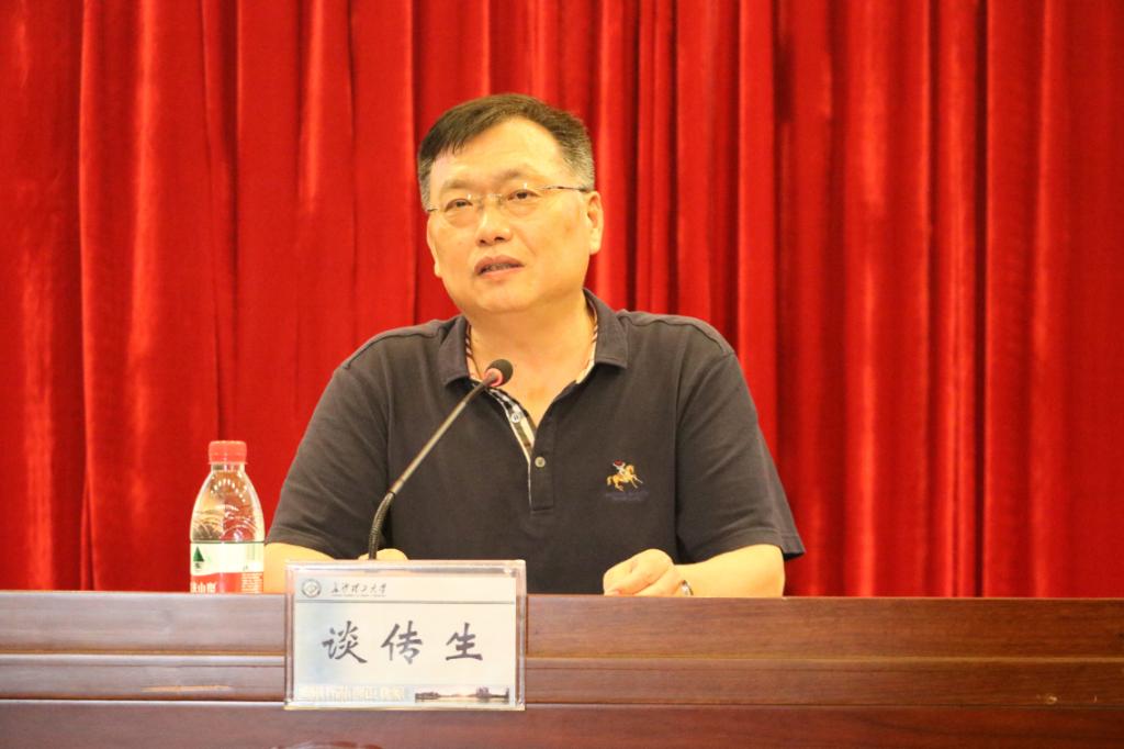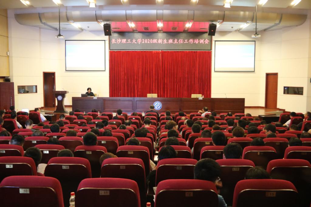 为加强班主任队伍建设,推进“三全育人”走实走深,2020年9月8日下午,学校在图书馆报告厅举行2020级新生班主任培训会。副校长谈传生出席会议并讲话,学工部部长艾楚君、副部长贺良,教务处副处长刘洪深,心理中心主任龚勋,全体2020级新生班主任、新生辅导员参加了培训。培训会由艾楚君主持。