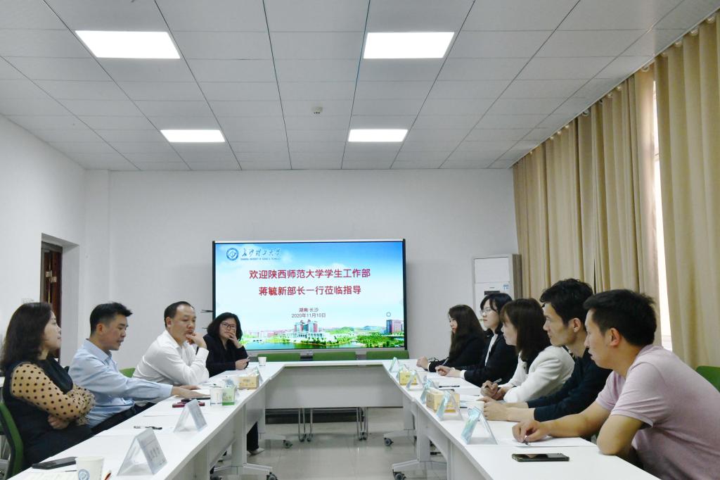 11月10日下午,陕西师范大学学生工作部(处)蒋毓新部(处)长一行6人到william学工部进行调研。校学生工作部(处)部(处)长艾楚君,土木学院党委书记丁丹,学工部副部长贺良参加交流座谈。